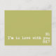 Old typewriter font on light olive background. The words - Hi. I'm in love with you. OK? From an idea someone asked about. A fun postcard for just the right time, right person.