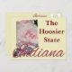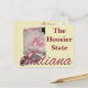 True to its motto, "Cross Roads of America" Indiana has more miles of Interstate Highway per square mile than any other state. The Indiana state Motto, can be traced back to the early 1800s. In the early years river traffic, especially along the Ohio, was a major means of transportation. At one time, 12 different stagecoach lines ran through Indiana on the National Road (now known as Interstate 40), a major westward route, and the north-south Michigan Road crossed in Indianapolis. Today more major highways intersect in Indiana than in any other state. Though a track, and not a highway, the first long-distance auto race in the U. S. was held May 30, 1911, at the Indianapolis Motor Speedway. The winner averaged 75 miles an hour and won a 1st place prize of $14,000. Today the average speed is over 167 miles an hour and the prize is more than $1.2 million. Indianapolis Motor Speedway is the site of the greatest spectacle in sports, the Indianapolis 500. The Indianapolis 500 is held every Memorial Day weekend in the Hoosier capital city. A resident of Indiana isn't called an "Indianan". They are officially known as a "Hoosier". The origins of this are widely disputed, but the leading theory has "hoosier" originating from Virginia, the Carolinas and Tennessee as a term for backwoodsman, a rough countryman or country bumpkin. The state name, however, has a simpler origin, meaning "Land of the Indians", though less than 8,000 Native Americans live in the state today. As the state has only 40 miles of shoreline, many don't realize that Indiana is also a Great Lakes state, bordering Lake Michigan on the northwest. Indiana's state flower is the peony. This lovely design pays homage to our beautiful 19th state. An outline of the state is filled with lovely pink peonies. This is paired with the a light rose "Indiana" and the state nickname in a deep berry. These delightful postcards can be purchased before your vacation so you lose no time shopping for them and can concentrate on all the beauty around you.