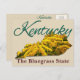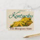 Bluegrass, bourbon, horses and, well, fried chicken come to mind when I think of Kentucky. Kentucky is known as the "Bluegrass State", a nickname based on the bluegrass found in many of its pastures due to the fertile soil. One of the major regions in Kentucky is the Bluegrass Region in central Kentucky, which houses two of its major cities, Louisville and Lexington. It is a land with diverse environments and abundant resources, including the world's longest cave system, Mammoth Cave National Park, the greatest length of navigable waterways and streams in the contiguous United States, and the two largest man-made lakes east of the Mississippi River. Kentucky has more navigable miles of water than any other state in the union, other than Alaska. Kentucky produces 95% of the world's supply of bourbon whiskey, and the number of barrels of bourbon being aged in Kentucky (more than 5.7 million) exceeds the state's population. Bourbon has been a growing market – with production of Kentucky bourbon rising 170 percent between 1999 and 2015. The biggest day in American horse racing, the Kentucky Derby, is preceded by the two-week Derby Festival in Louisville. KFC was founded by Colonel Harland Sanders, an entrepreneur who began selling fried chicken from his roadside restaurant in Corbin, Kentucky, during the Great Depression. Sanders identified the potential of the restaurant franchising concept, and the first "Kentucky Fried Chicken" franchise opened in (surprisingly) Utah in 1952. Though technically a Commonwealth, Kentucky was the 15th state to join the union. This design pays homage to this spectacular state. The state outline is filled with the lovely yellow florets of the Goldenrod, the Kentucky State Flower. This is layered with the deep "bluegrass" "Kentucky" and anchored with a dark, bourbony maroon "The Bluegrass State". These delightful postcards can be purchased before your vacation so you lose no time searching for them and can concentrate on all the beauty around you. Pair with the matching postage stamps for even more impressive presentation.