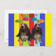 Postcard Make Every Day A Happy Friday - 2 basset hounds on rainbow colours with smiley faces