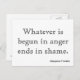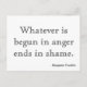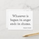 Whatever is begun in anger ends in shame. - Benjamin Franklin