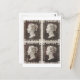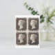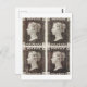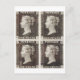 Image of four 'one penny black UK postage stamps' on the front of a postcard that you can use or collect & frame.