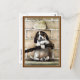 Here we have a cute 4 week old puppy dog, hoping to be adopted. The puppy is leaning against a brick wall and holding a stick. This adorable puppy image was originally published as an advertising card by L. Prang & Co. It was created by M.W. Bowsall in the late 1800s or very early 1900s.