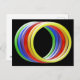 Rings in rainbow colors of green, blue, purple, red, orange, and yellow are stacked horizontally on a black background. Highlights give image a three dimensional look.