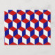 Illusion. Multiple three dimensional blocks in red, white, and blue, are staked like building blocks. Look at them long enough and the "top and sides" seem to change positions.