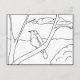 Robin sitting on branch of tree. Horizon and cloud in background. Bush in lower right corner. Color in your own style, using ink, paint, crayons, or ??