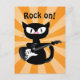 Rock on! Rocker Black Cartoon Cat with Guitar postcard. Artwork by Aaron Gibbs.