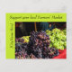 Farmers' Market. Promote your local Farmers' market with these post cards that allow you to personalize the front text with the market/city name. "Support your local Farmers' Market ____" Image of purple and green grapes on vendor's table.