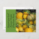 Promote your local Farmers' market with these post cards that allow you to personalize the front text with the market/city name. "Support your local Farners' Market ____" Image of various orange and yellow squash in a tote bin.
