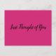 Classy, but simple postcard for those times when you have a specific fleeting thought about someone and want to 'quickly' let them know. A phone call will certainly do, but this special keepsake lasts for however long the recipient desires. Enjoy the variety of colors and messages!