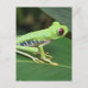 Really cute red eye tree frog sitting on a green leaf.
