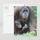 Orangutan mother with a baby clinging to her.