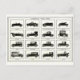 Perfect for sending a quick note to the men in your life, here's a lower postage postcard featuring a unique vintage illustration that shows different types of automobiles.
