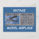 Vintage model airplane "Miss Tiny" with descriptive information from original model plans. Drawn by John Muir, Checked by Barney Snyder