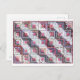 Photo of a patchwork quilt that I designed and made in 1970s. I took the photo on slide film back in the day, and discovered it recently when I digitised my photo collection. I've re-imagined the photo as a postcard. The pattern is traditional log-cabin, with red centres. Patchwork enabled me to indulge my two designing delights - geometrics and textiles.