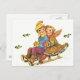 Postcard, Beautiful Vintage Winter Fun Art of Boy and Girl on a snowy Sleigh Ride! Great nostolgic memories in a very cute design for friends, loved ones and family!