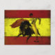 Postcard with matador and bull on dirty old Spanish flag. We change and add both text and colors, as well as size and placement, all upon request. Contact us with your unique needs and we do the rest!