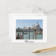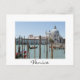 Postcard with gondolas and gondoliers on the water of the Canal Grande with the Santa Maria della Salute church in the background creating a romantic city landscape during the summer holidays in Venice, Italy with a white edge around it and the text: 'Venice'.