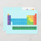 Postcard featuring periodic table of the elements, with each element group marked in rainbow colours.