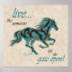 Brighten Your Home With This One Of A Kind Horse Poster. It Features a Galloping Horse Silhouette in Turquoise, Black & Gold and the Inspiring Words..."LIVE LIKE SOMEONE LEFT THE GATE OPEN"!