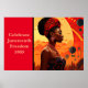 Poster is shown with a photo art print of a woman in celebration of Juneteenth.
