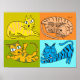 4 Cats Illustration Collectible 15.75"x12" Poster