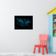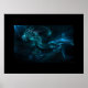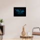 Poster shown with a abstract art print of a dragon in colors of blues and greens.