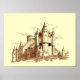 Alcazar - castle in Spain. Original artwork by John A. Muir. Reproduction of stippled pen & Ink drawing .