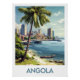 Vibrant illustration of Angola with a coastal view of Luanda blending beach, palm trees, fishing boats, and modern skyscrapers. A colorful poster perfect for wall decor mixing nature and urban life.