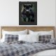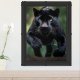 This framed poster is shown with a photo print of a beautiful black leopard in action.