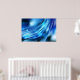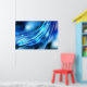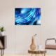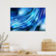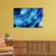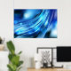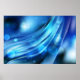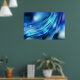 This poster is shown in a abstract art print of flowing lines in colors of blue.