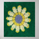 Crochet pattern of daisy in yellows, gray and hunter green. Make your room walls warm and fuzzy.