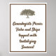 Genealogy related humor. "Genealogist's picnic - Fiche and Ships topped with tantalizing Sources!" Script in brown with drop-shadows. Dark brown line marks edges of print. At top sits an oak tree with spreading branches.
