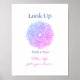 This poster has an image of a filigree circle in pink, blue and purple colors over a white background. Beneath the filigree are two words: "Faith" and "Hope". Center text above and below the filigree reads "Look up" and "when life gets you down".