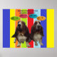 Poster Make Every Day A Happy Friday 2 basset hounds on rainbow colours with smiley faces