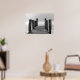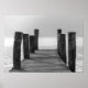 Poster shown with a black and white photo print of a ocean dock scene.