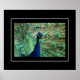 Poster shown with a photo print of beautiful majestic peacock on a black background.