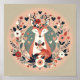 Poster, poster é children’s room coration This illustration presents a sweet and poetic scene, highlighting a family of foxes in an artistic style inspired by Scandinavian folklore. In the center, a strong protector, decorated with delicate flowers and branches, keeps a close watch on her small, nestled between her legs. Around them, floral patterns and hearts provide a warm and soothing atmosphere. The pastel shades of pink, green and beige accentuate the softness of the setting, while the floral and plant details create an impression of connection with nature. It is an image that evokes love, protection, and family serenity.
