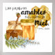 Poster de Proverbios 16:24 en diseño de acuarelas y caligrafia con abeja y miel.