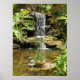 Tropical waterfall with a little mermaid sitting on a rock below and away from the fall. Very pretty tropical scene.