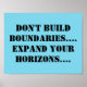 Poster with inspiring message,"Don't build boundaries, expand your horizons."