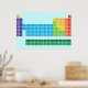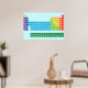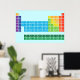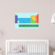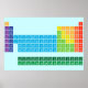 Poster featuring periodic table of the elements, with each element group marked in rainbow colours.