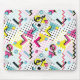 Check out this fun Memphis style pattern characterized by bold colors, geometric shapes, and whimsical designs.