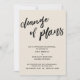 This simple suite's distinction is due to the modern, handwritten script font used for accent phrases. In this piece, the hand-lettered script font was used to create a graphic that reads "change of plans", large and bold. Use the template fields to add your personal details and make this unique, modern design your own. The background can be changed to any color you prefer. Please reach out with any special requests or for customizing assistance. // 100 //
