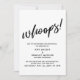 This suite's distinction is due to the modern, handwritten script font used for accent phrases. If you're in the position of needing to inform your wedding guests that you've had to change your big date, here is a humorous option. In this piece, the hand-lettered script font was used to create a simple graphic depicting the word "whoops!". Use the template fields to add your personal details and make this unique, modern design your own. The white background can be changed to any color you prefer. A horizontal option is also available. Please reach out with any special requests or for customizing assistance. // 100 //
