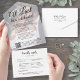 Invite family and friends to finally celebrate your special day with custom photo all-in-one QR code invitations. Customize the wording for any type of marriage celebration, whether it's a wedding reception only, sequel wedding vow renewal ceremony, post elopement party, 1st anniversary reception, cocktail hour or dinner party. It can include all of the important details such as marriage date, location, and website. With this design guests can choose the RSVP method they prefer, either with the traditional tear away postcard to be mailed, or with the scannable code leading to the wedding website. In addition, all wording is simple to personalize to include any details of your choice. The modern black and white overlay design features elegant script calligraphy, chic typewriter style typography, and one picture of the newlywed couple. (IMAGE PLACEMENT TIP: An easy way to center a photo exactly how you want is to crop it before uploading to the Zazzle website.) By scanning the QR code with their phones, guests are sent directly to the wedding website to reply to the invitation. An online rsvp process reduces the chance that cards will be lost in the mail. It's also more versatile, in that you can ask for more detailed information, such as meal choices, food allergies, and song requests. All response information can be customized or deleted. This invitation is a stylish way of asking wedding guests to kindly reply to your upcoming special day celebration. Whether you eloped, had a smaller downsized minimony or micro wedding, or your special day celebration had to be rescheduled due to a covid pandemic postponement, the happily ever after party can still get started. Congratulations to the bride and groom!