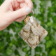 The key chain is made of metal and really sturdy. The flower design is really cheerful. The logo and colors are clear and crisp!