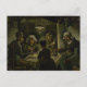 The Potato Eaters by Vincent Van Gogh, oil on canvas 1885, is a painting of a family of Dutch peasants gathered around their dinner table, eating potatoes and pouring coffee beneath an oil lamp in their humble cottage. Potato Eaters was the first ambitious composition with multiple figures after years of studies of single figures and portraits drawn from life while living among the people of Nuenen in the artist’s native Holland. Painted in thick strokes of impasto oil paint with deliberately crude, emphatic drawing capturing the character and earthiness of the subjects, the painting makes broad use of dramatic chiaroscuro reminiscent of Rembrandt and areas of heavy, dark earth colors such as dark brown and umber. Potato Eaters is the seminal masterpiece of Van Gogh’s early Dutch period, before moving to Paris and learning the methods and color theories of the Impressionists.