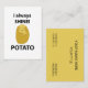 Potato I Always Shine Funny Potato Business Card original design by Nisha Prabhu. Fully Customizable. Personalize with your details. Make an unforgettable impression with this delightfully humorous and eye-catching business card that says "Potato I Always Shine"! Perfect for anyone looking to add a dash of fun to their networking game, this card is not just about business—it's about personality! Stand out from the crowd with a quirky potato illustration that captures attention and sparks laughter. The witty phrase is a conversation starter, making it easier to connect with potential clients and collaborators. Perfect For: Creative professionals, Food enthusiasts, Farmers’ market vendors. Whether you're at a networking event, handing out cards at a food festival, or just spreading a little joy, this business card is sure to put a smile on people's faces.