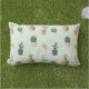 This product turned out exactly as it is shown online. The construction is excellent. The fabric of this pillow is soft to the touch, and even though this is an outdoor pillow, it can easily be used indoors as well. The printing of this pillow is perfect and I love how this is a reversible pillow with one side decorated with just the word "cheers", and the other side has "cheers" and tropical palm leaves. This pillow coordinates perfectly with several other pillows found in this outdoor pillow collection, by prettyfancypillows.